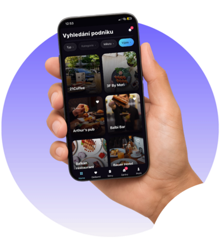 V aplikaci si vyberete nabídku, která se vám líbí. Přímo v podniku pak uplatníte slevový kód z aplikace. Je to rychlé, digitální a bez zbytečného papírování.